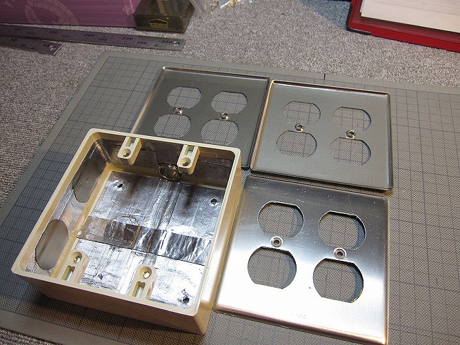 | コンセントボックス(樹脂製)に鉛テープ、プレート裏面に電磁派吸収シート貼り付け |