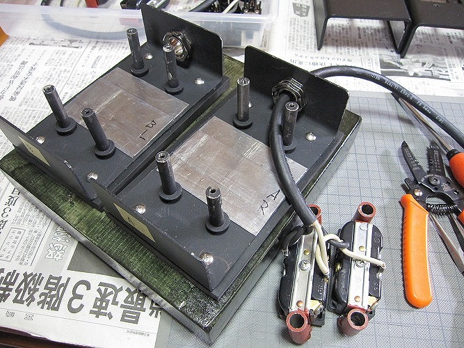 | 鉄ボックス組み上げ、端子接続 |