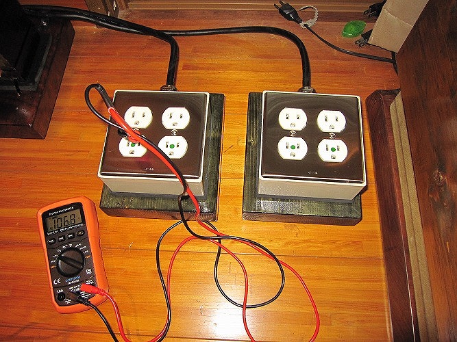 | 設置後、電圧測定。ここは106.8Vでやや高めの電圧です |