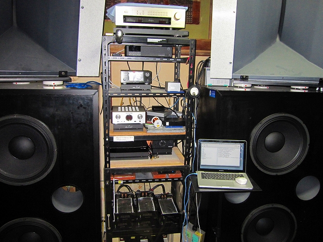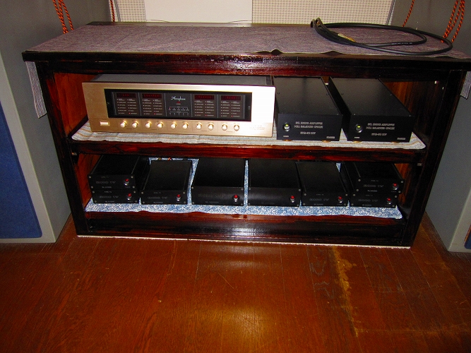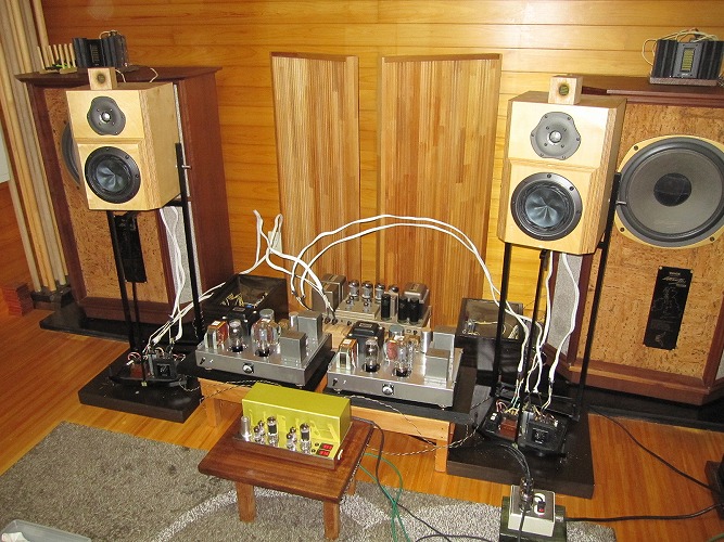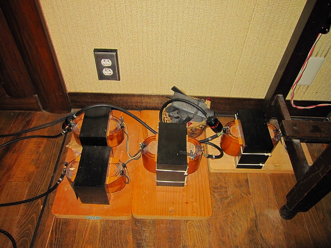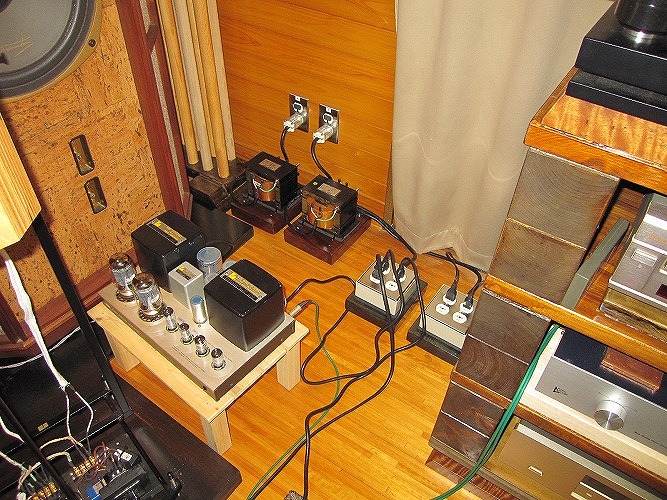 | @同じボリューム位置で音が大きくなった。電源改修後の試聴ですぐに感じたのがコレ。生活用電源とオーディオ用電源を完全に分離したことによる電源電圧の上昇が要因とも考えられるが、磁性体の完全排除によるひずみの低減、ノイズが減ったことによるSN比の改善また、配線方法の適正化など全てのノウハウが総合的に効いた結果だと思われます。 |