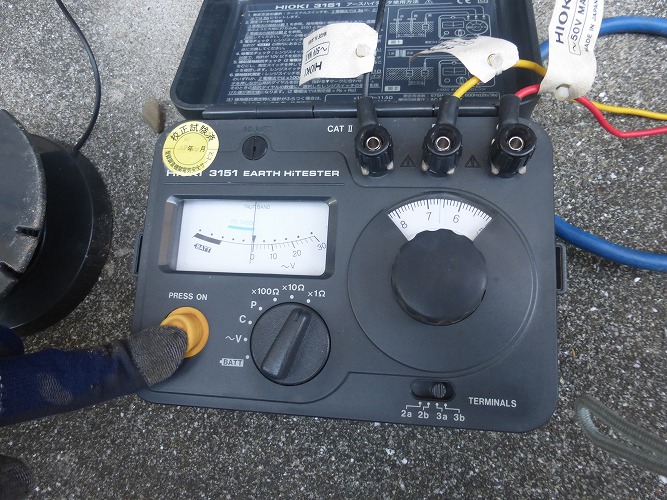 | 全てのアースを接続した結果アース抵抗は3.4オームとなり目標とした5オーム以下をクリアしました。 |