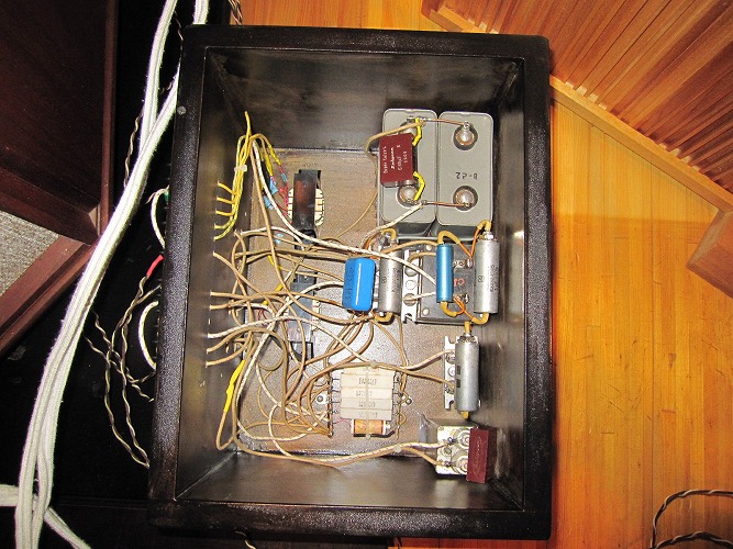 | ネットワークを改修しました。腐っても鯛とばかりにオリジナルにこだわる方も居られます。それもひとつの見識として否定はしませんが、古くなった機器は永年の使用により、初期性能を保持していることはまず有りません。特に接点や、コンデンサーそして意外にも、配線材も劣化が進んでいます。また、タンノイと云えども商業製品ですから、利益を出すために妥協した部品を使ってあります。これらを見直して、改良・交換することにより画期的な改善が望めます。今回の改修により音がクリアーになり、楽器のひとつひとつが良く分離して聴けるようになりました。 |