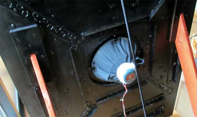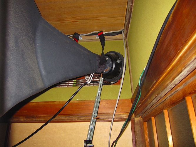 | 鉄製L字アングルを外し、樹脂製結束帯で縛る、鉄アングルだと音がこもるためです。 |