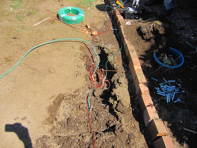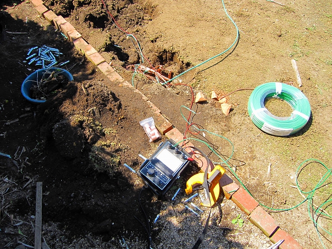 地盤が固くてなかなか入りませんが最終的に用意した40本のアース棒を全部使い切りました。