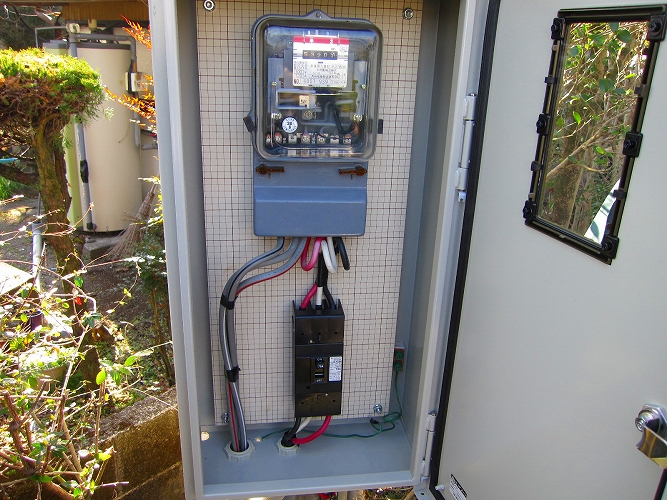 | @生活用電源とオーディオ用電源を完全に分離する。今回はマイ柱(柱上トランス)まではしないで電力量計後の契約用ブレーカーの出側で分離。 |