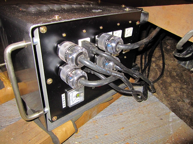 | ちょうど一年前に電源改修工事をされたB会員が、電源改修第2弾として、アイソレーショントランスの挿入および、コンセントボックスの設置をされましたので紹介します。 |
